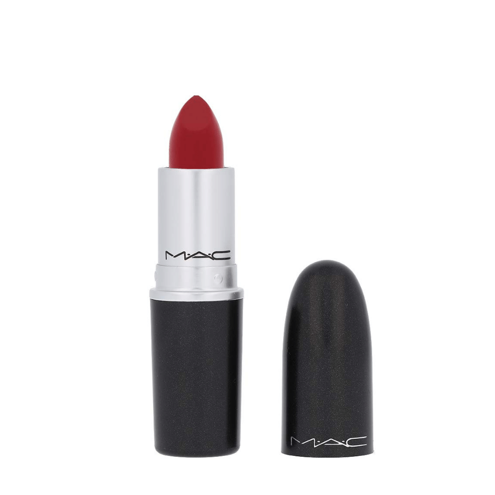 Labial muy popular, Ruby woo de Mac, mate, es una fórmula de lápiz labial rica y cremosa con un resultado de color intenso en un acabado mate aterciopelado. Larga duración, 12 horas. No se riega.