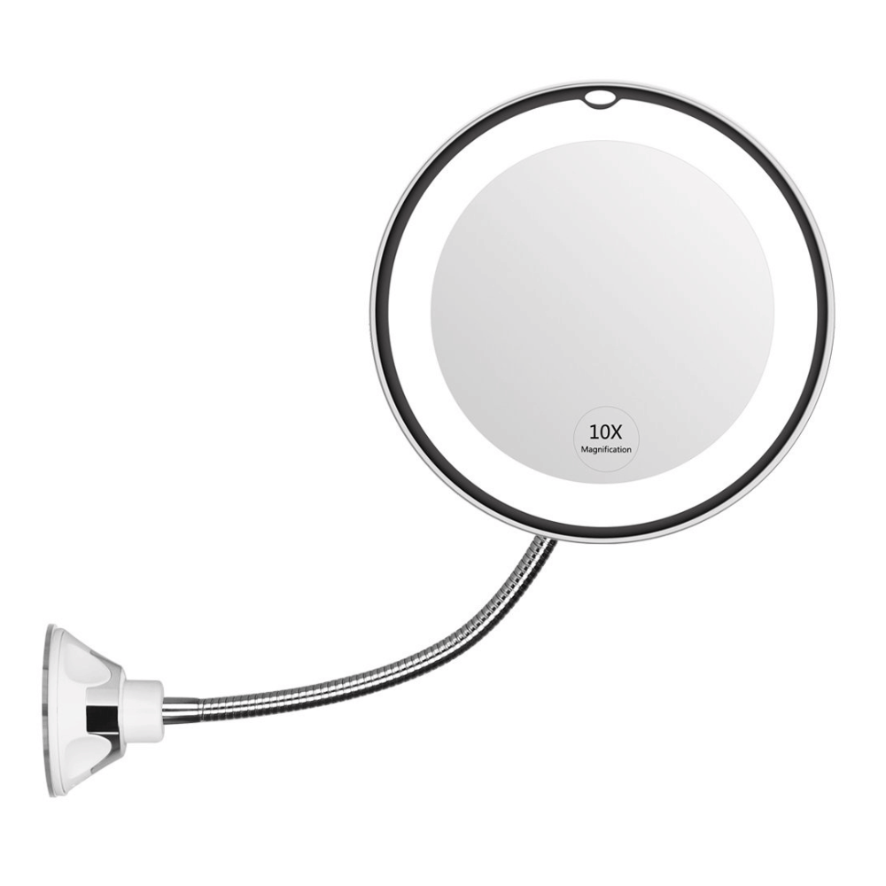Espejo con aumento para maquillaje. Cualquiera que use anteojos necesita este espejo. El aumento de 10x te permite verlo todo, y el cuello de cisne te permite acercarlo lo más cerca de tu cara que quieras (especialmente útil cuando estás luchando con una lente de contacto suelta). No más inclinarse sobre el lavabo del baño y mojarse toda la ropa.