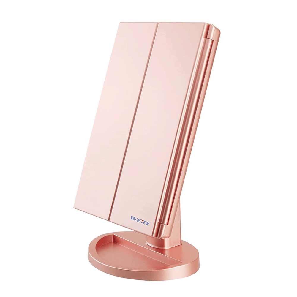 Me encanta un buen espejo plegable, y lo mejor de este es el sensor táctil. Un simple toque lo enciende y puede alimentarlo con un cable USB o cuatro baterías AAA. Los tres espejos de aumento facilitan la aplicación de maquillaje desde todos los ángulos. Por el precio, no se puede superar.