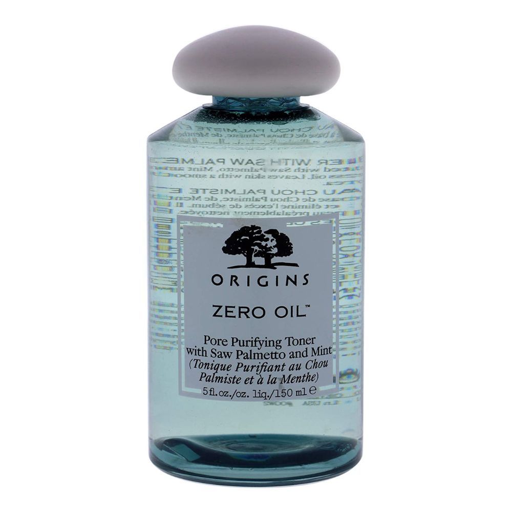 El tóner purificador de poros Zero Oil de Origins está formulado con Saw Palmetto, menta y ácido salicílico que reduce instantáneamente el brillo y elimina el exceso de grasa.